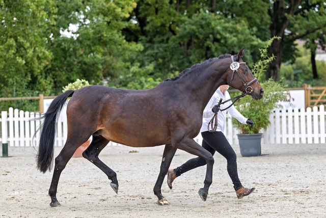 Tochter La Cala des Vollblüters Asagao xx mauserte sich zur „Besten der vierjährigen und älteren Stuten“ sowie „Besten Halbblutstute“ der Zentralen Trakehner Stuteneintragung in Bayern 2021 und ist mittlerweile im Stall Klimke zu Hause, wo sie schon Dreisterne-Luft schnuppern konnte.