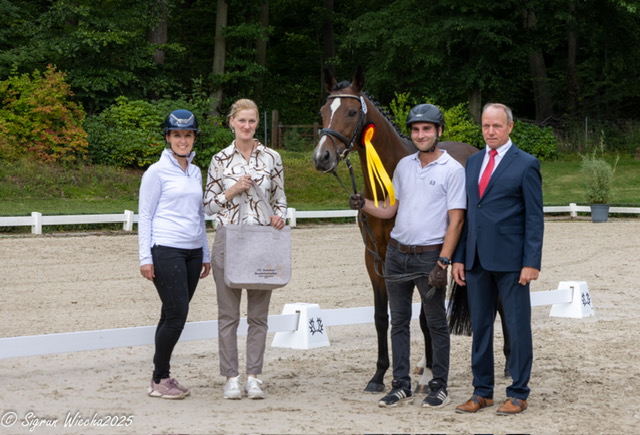 Bereits in der Sportklasse, in der sechsjährige und ältere Stuten in verschiedenen Abteilungen antraten, sicherte sich unsere LASSIDA den Ib-Preis in der Abteilung der springbetonten Stuten. Im Finalring aller Abteilungen bekam sie dann den Id-Preis gegen starke Konkurrenz aus M- bzw. S-erfolgreichen Dressurstuten.